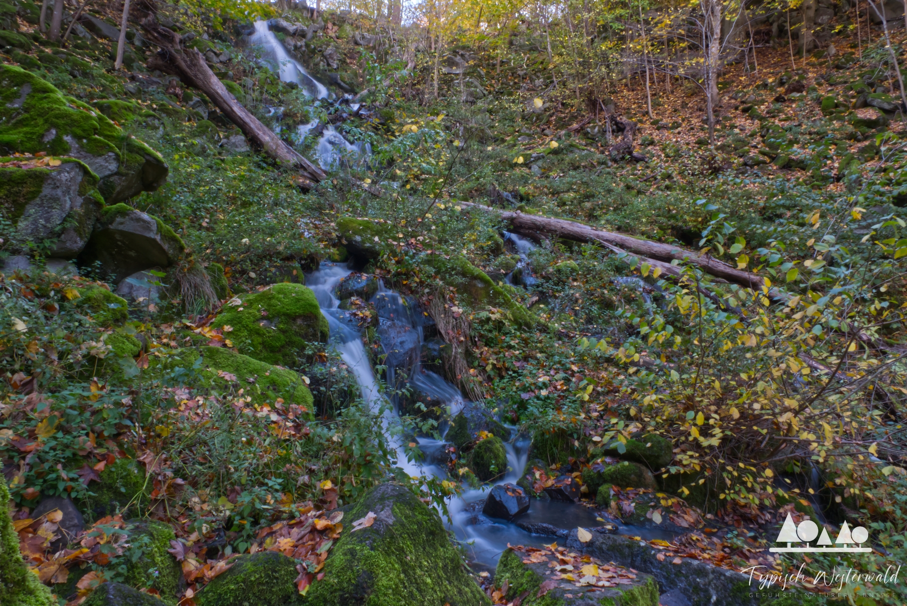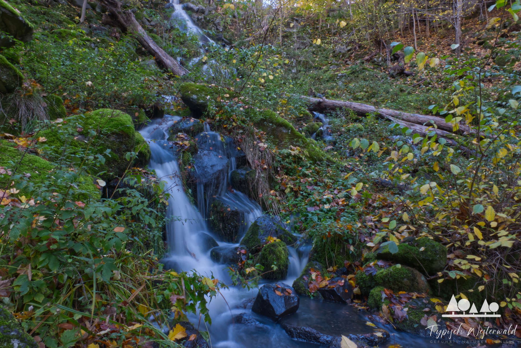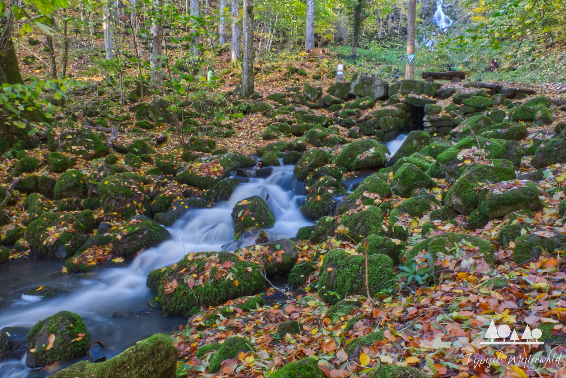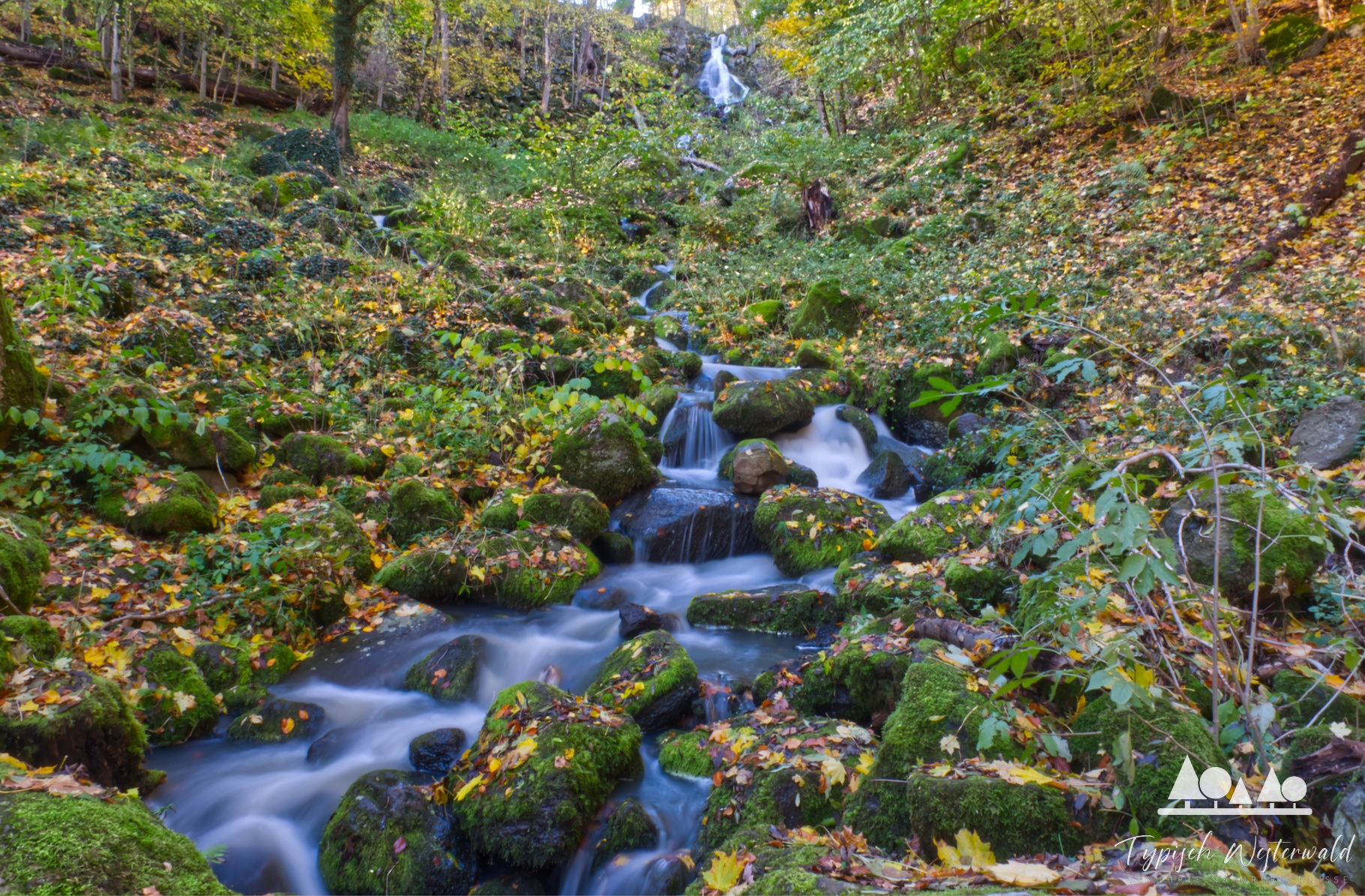 Die Bedingungen hätten kaum besser sein können: Der Bach führte ordentlich Wasser, das Laub leuchtete in herbstlichen Farben, und das späte Nachmittagslicht tauchte den Wald in ein sanftes Gold – auch wenn die Sonne den Wasserfall selbst gegen 17 Uhr schon nicht mehr direkt erreichte.