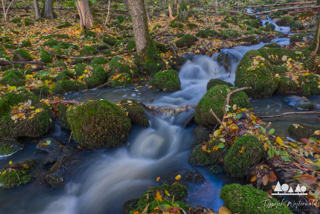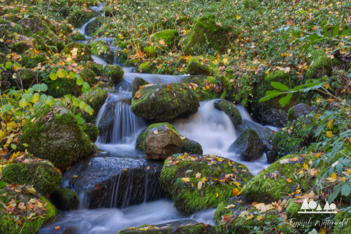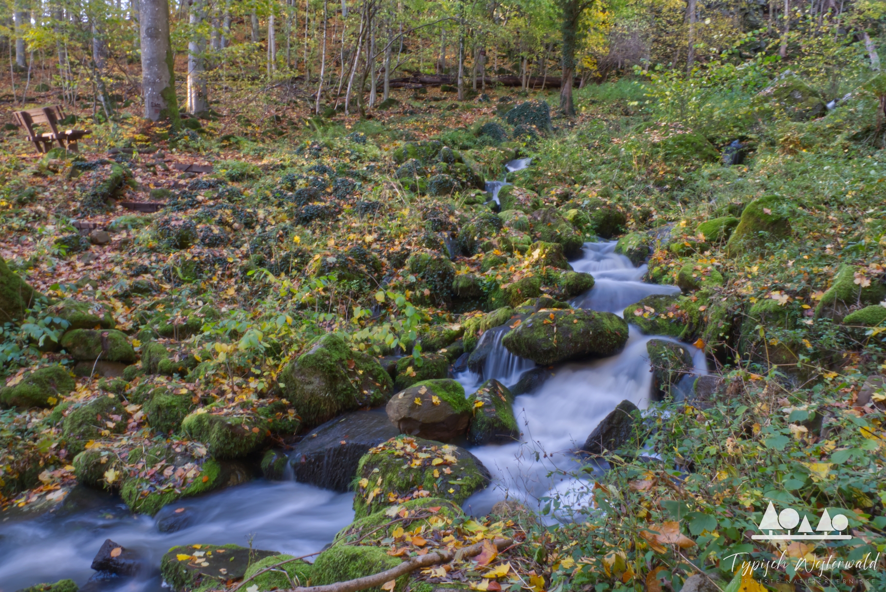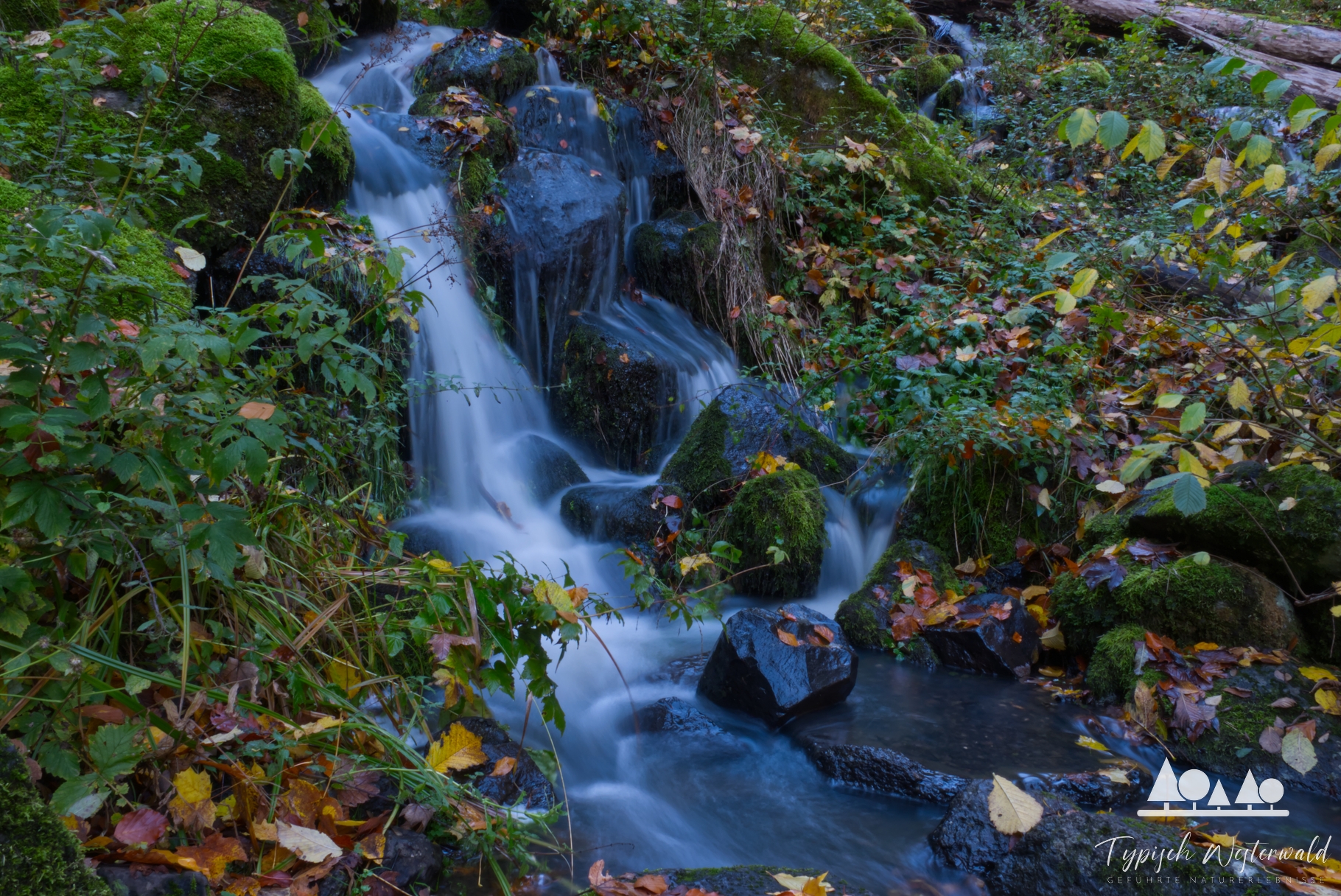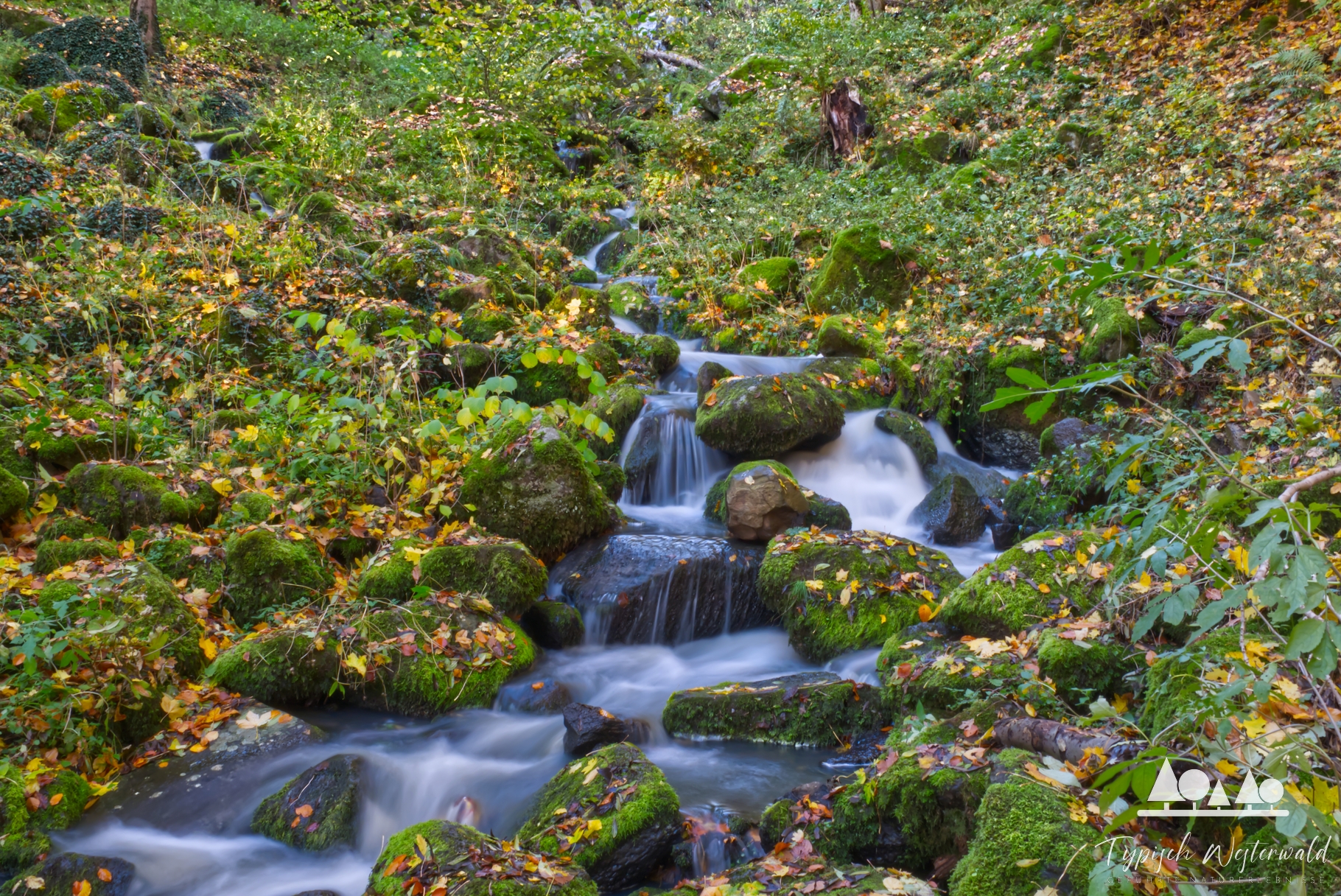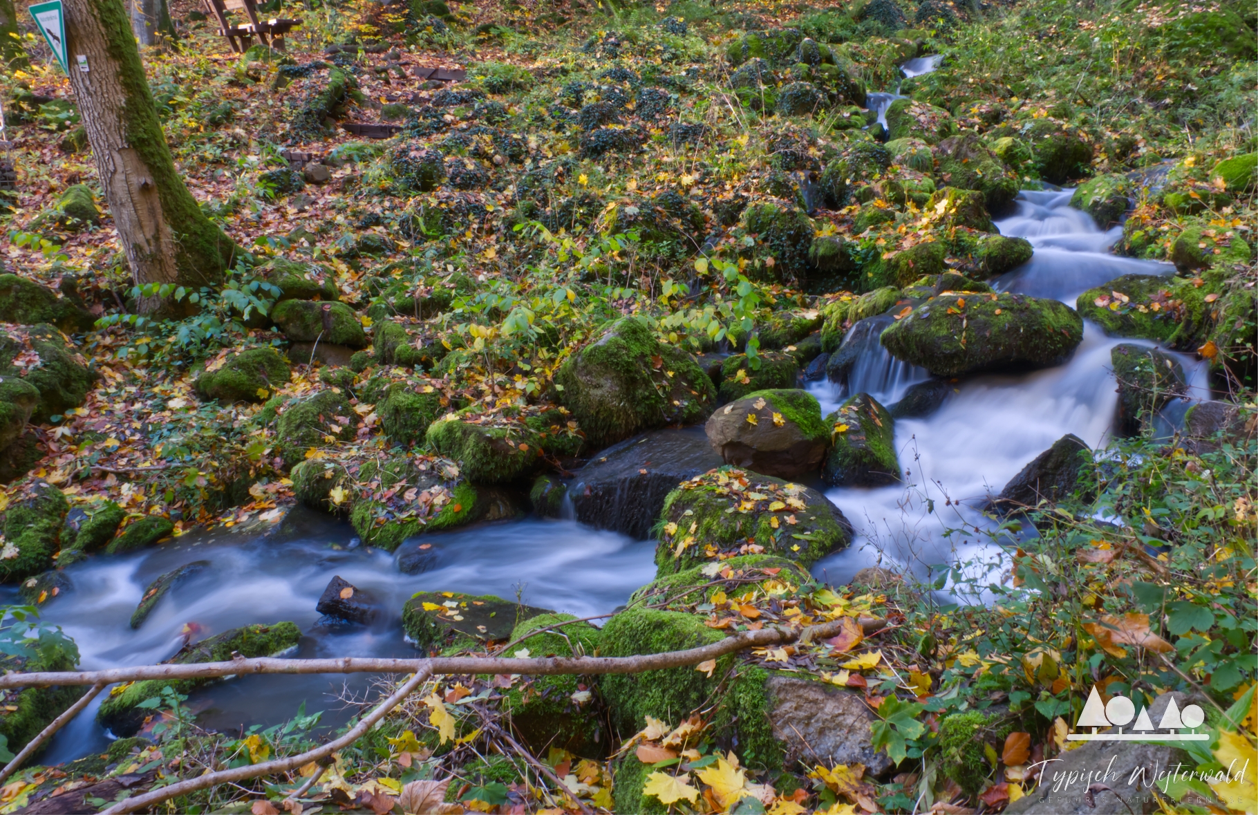 Die Bedingungen hätten kaum besser sein können: Der Bach führte ordentlich Wasser, das Laub leuchtete in herbstlichen Farben, und das späte Nachmittagslicht tauchte den Wald in ein sanftes Gold – auch wenn die Sonne den Wasserfall selbst gegen 17 Uhr schon nicht mehr direkt erreichte.