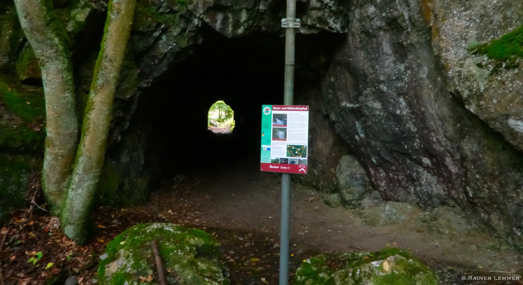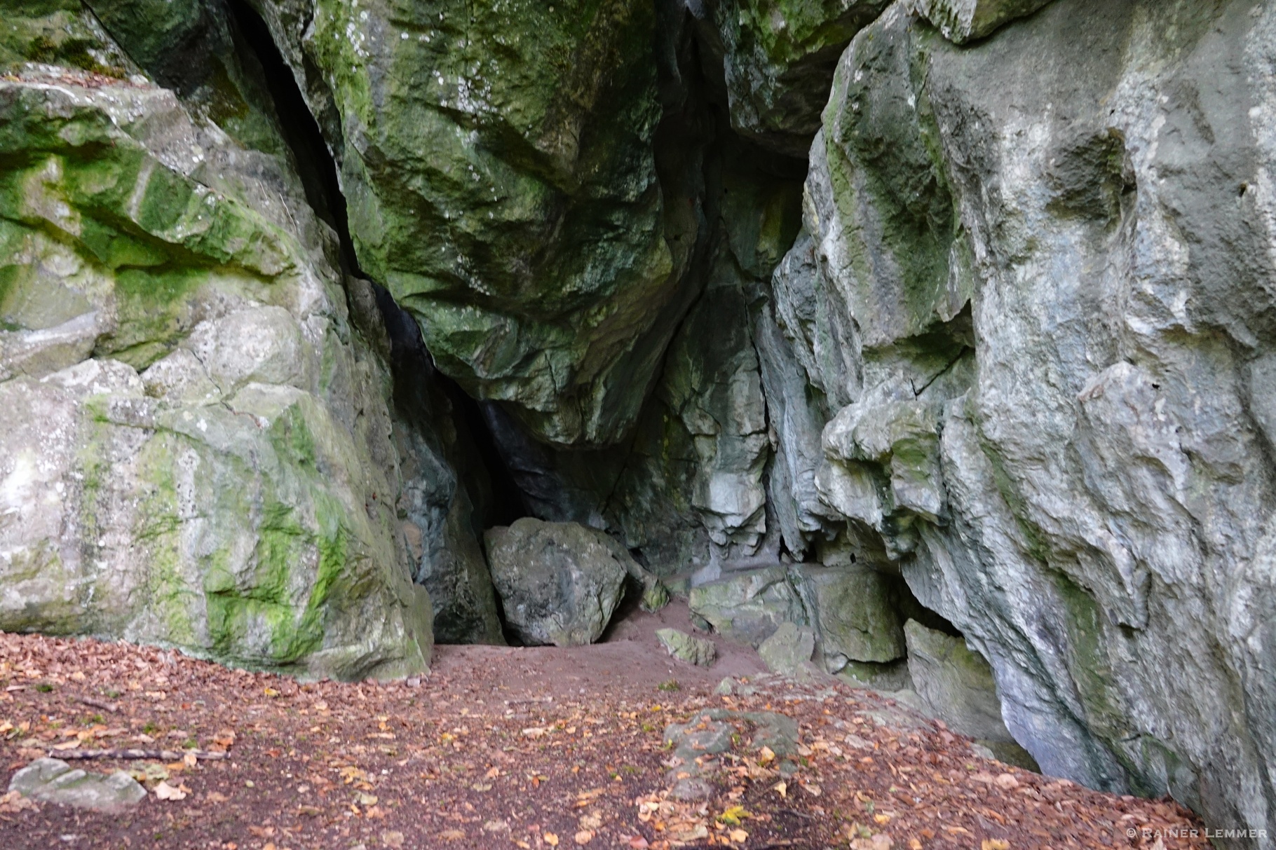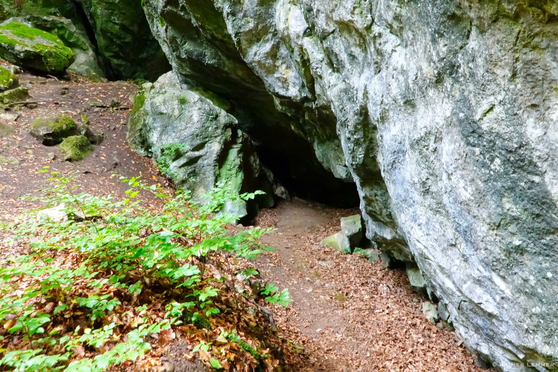schließlich im Talkessel auf eine weitere Höhle. Hier gibt es die Möglichkeit, durch einen schmalen Spalt im Fels zu klettern – eine Herausforderung, die nur die Kinder meistern können. Mamas und